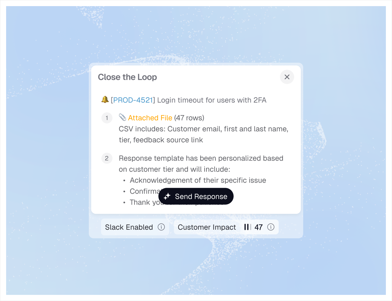 Turn insights into action by automating workflows in Jira, Slack, and other tools to close the loop