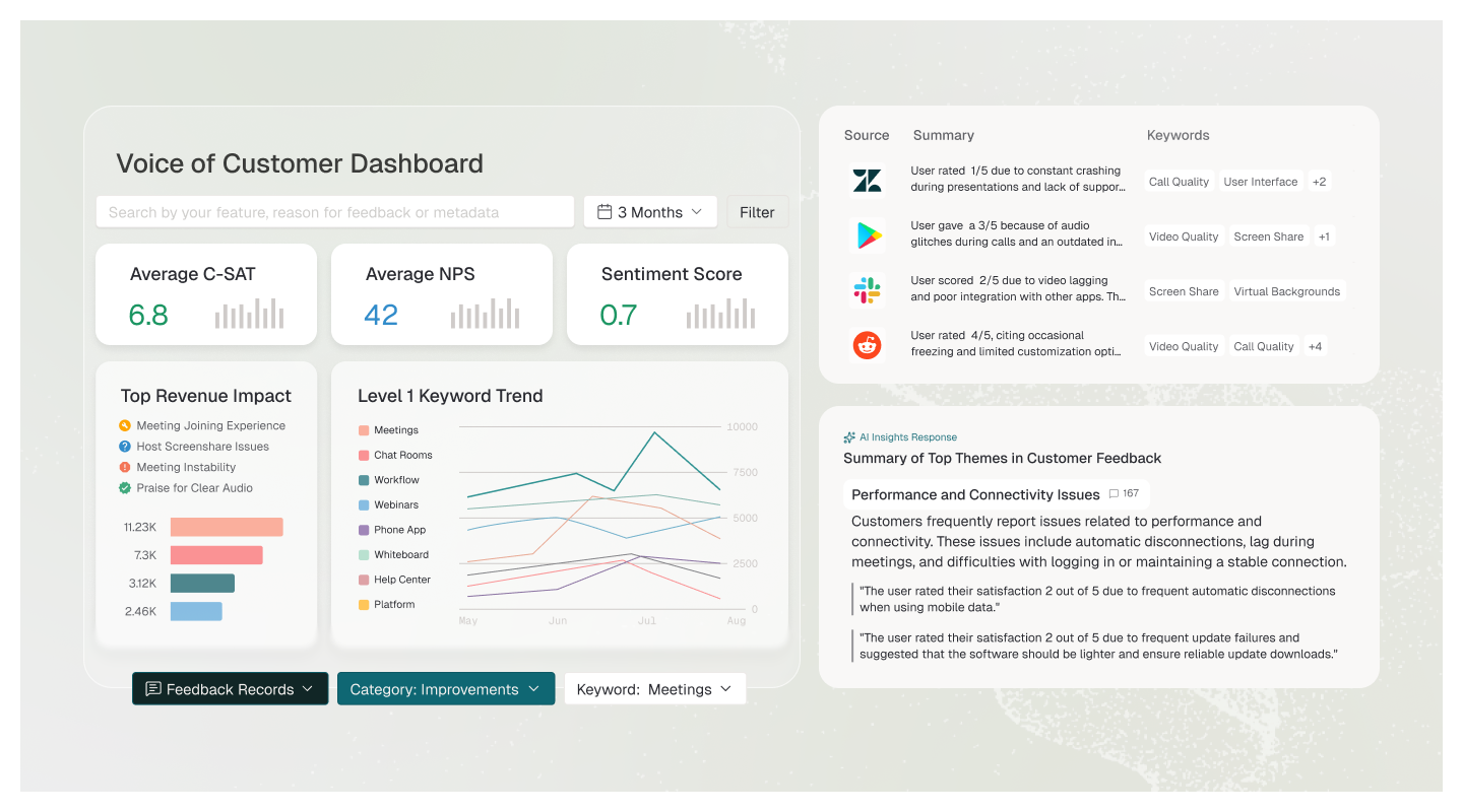 In the AI era, competitive advantage moves at the speed of customer feedback. But most companies are still trapped in the reactive era. Quarterly surveys that capture 2% of your customers. Manual categorization that consumes 80% of analyst time. Static dashboards that take months to surface insights that are already obsolete.