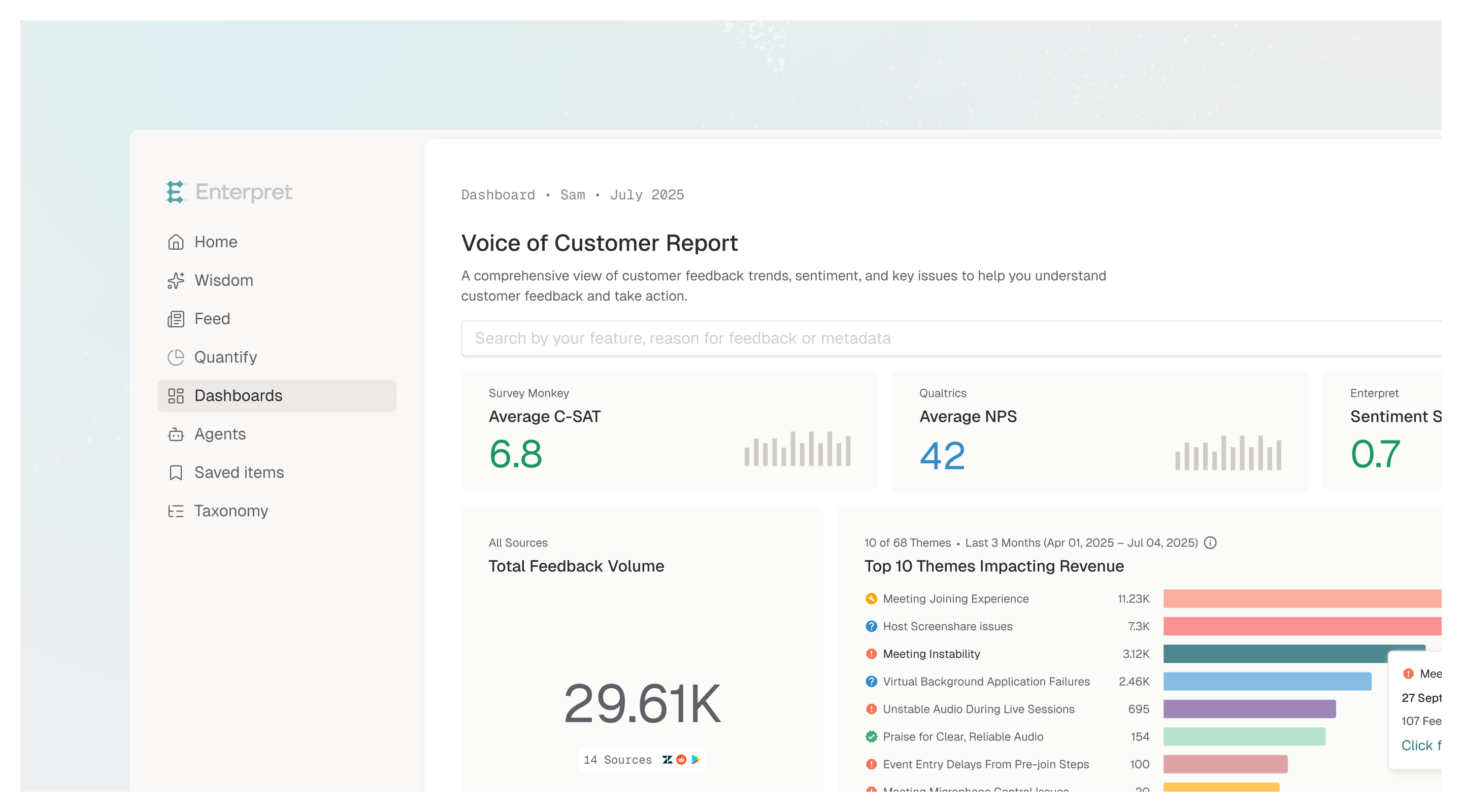 Enterpret is the leading customer intelligence platform that unifies all your feedback with AI that understands your business, turning noise into intelligence that drives growth