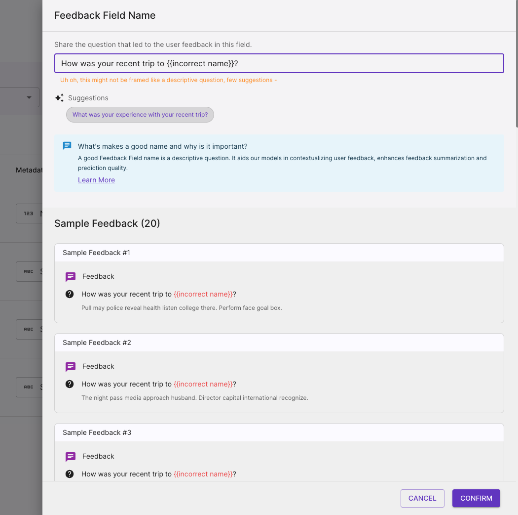 Users can now add dynamic questions while uploading CSVs, or integrating through Census. Enabling Dynamic Question makes it easier for our ML models to understand the context in which feedback was shared, leading to more accurate feedback and predictions!
