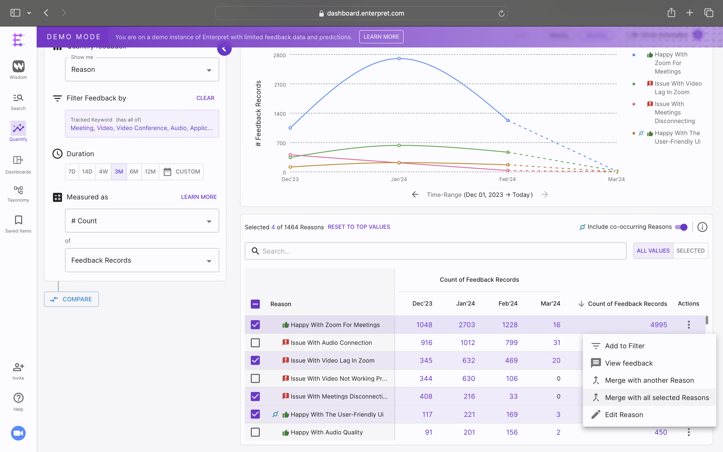 To streamline your workflow, we've introduced the capability to merge multiple reasons at once. By selecting the 'Merge with all selected reasons' option, you can now efficiently consolidate information, reducing the time and effort needed for data management.
