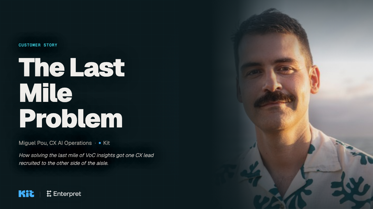 Miguel leads CX AI Operations at Kit. The role didn't exist before he started doing the work. He built enough value with Enterpret and AI tooling that the company created a position around what he was already doing.
