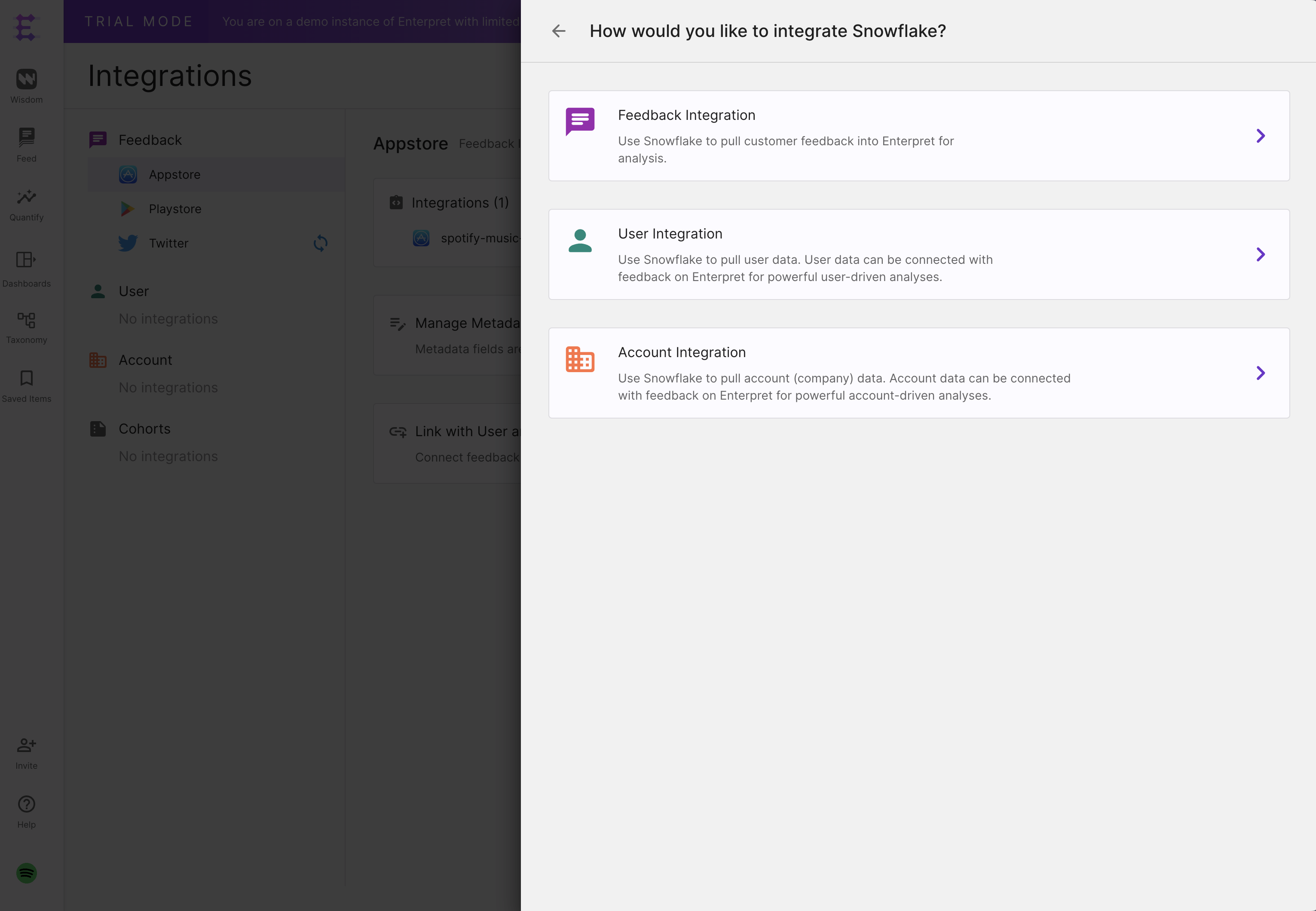 Ingest customer feedback from Snowflake directly into Enterpret.