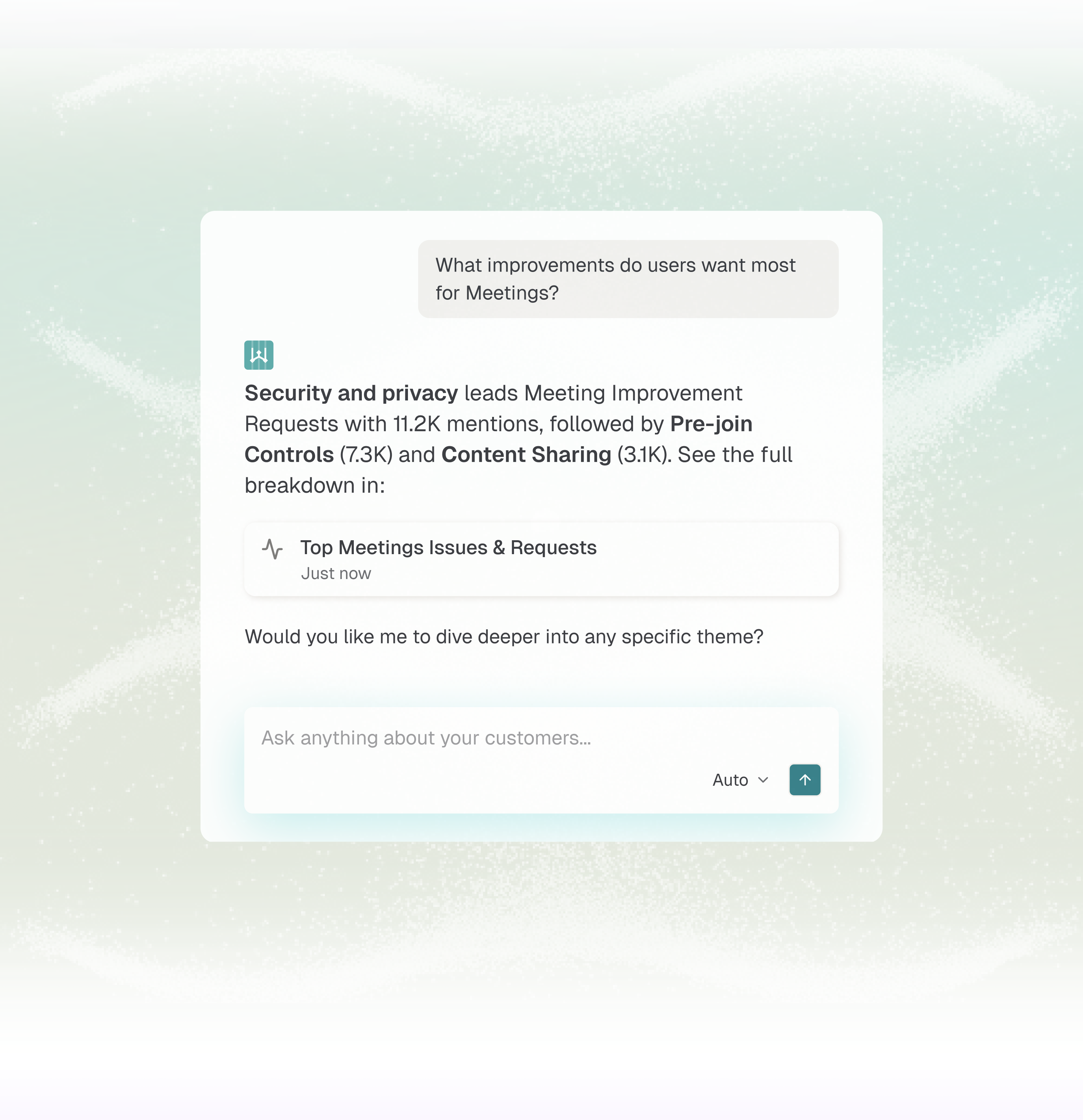 Automate feedback tagging, taxonomy management, insight generation, and trend monitoring/alerting. All with proprietary AI models trained specifically on voice of customer data.