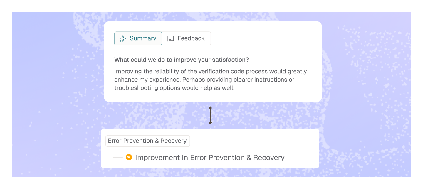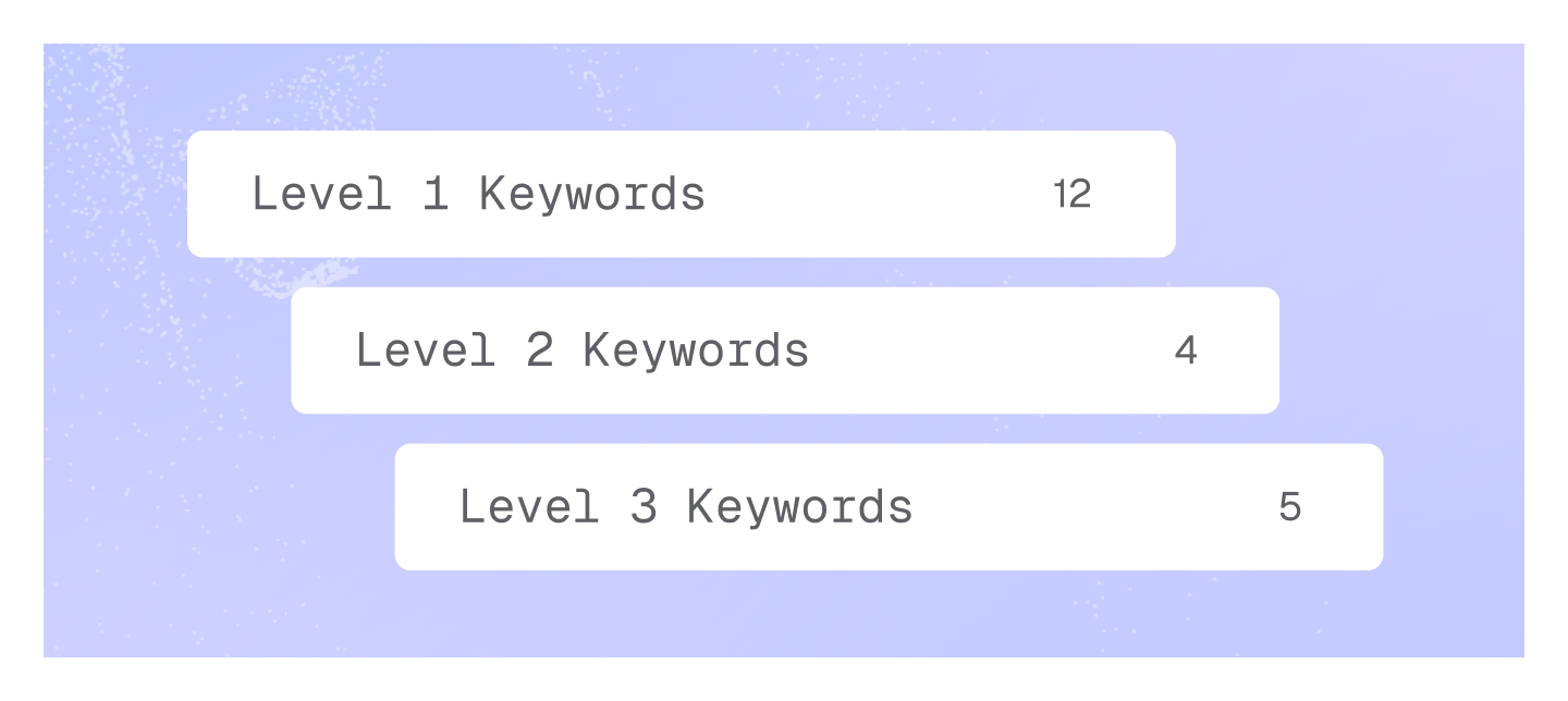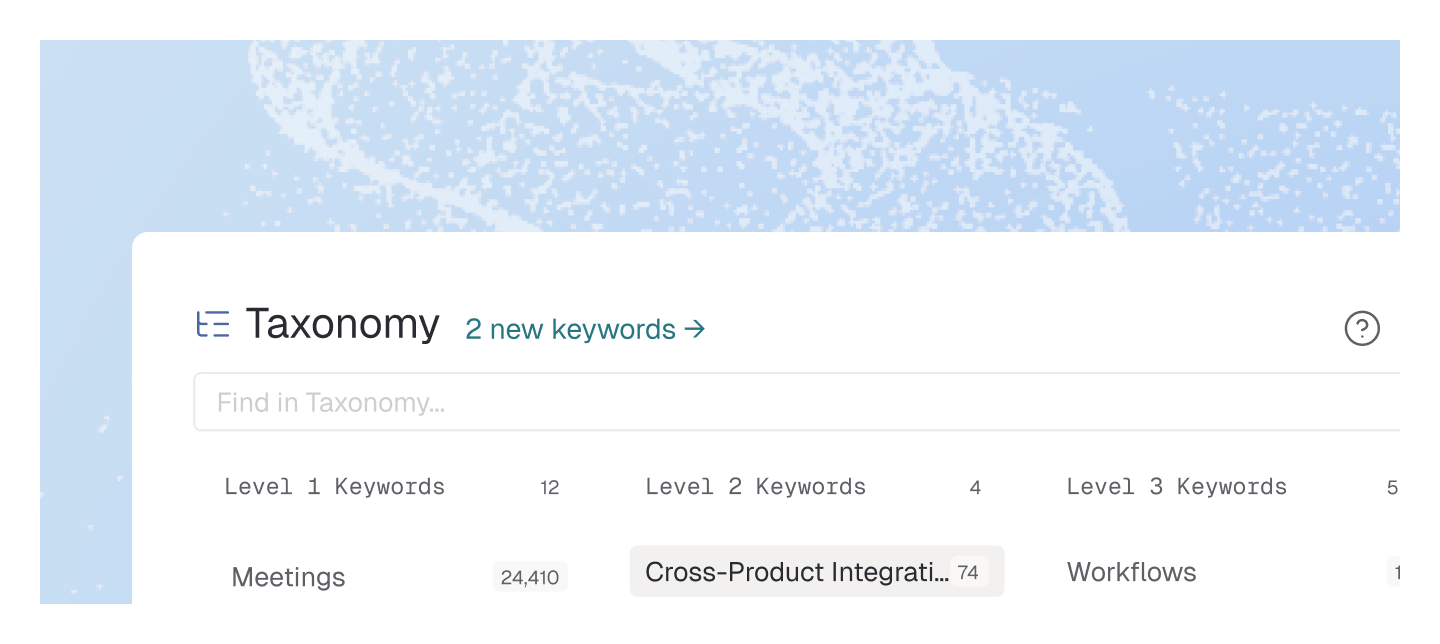 Automatically organize feedback into L1/L2/L3 Keywords (product area → feature → sub-feature) plus Themes/Sub-themes that reveal the "why" behind the "what" - mirroring how your teams actually work.