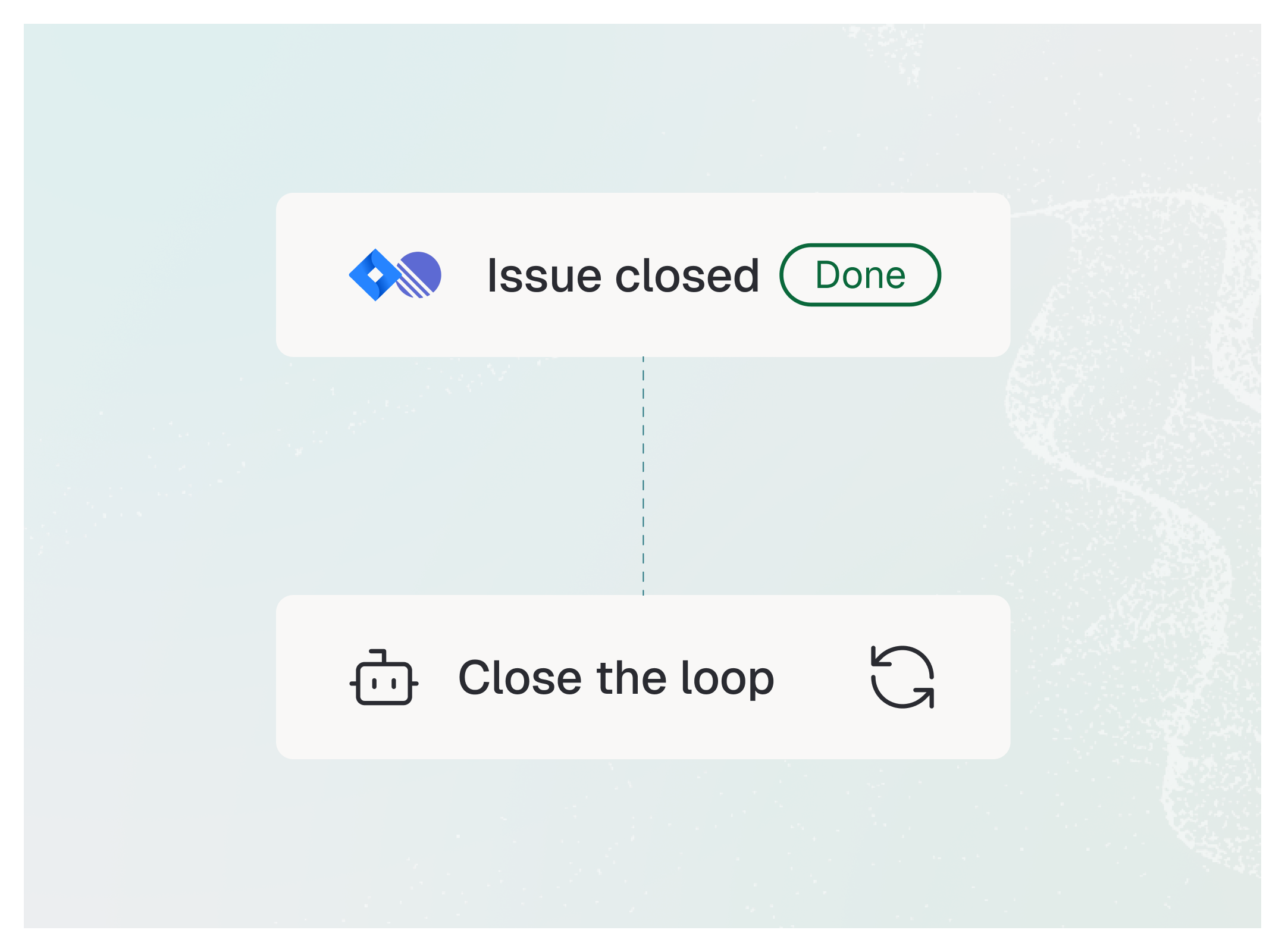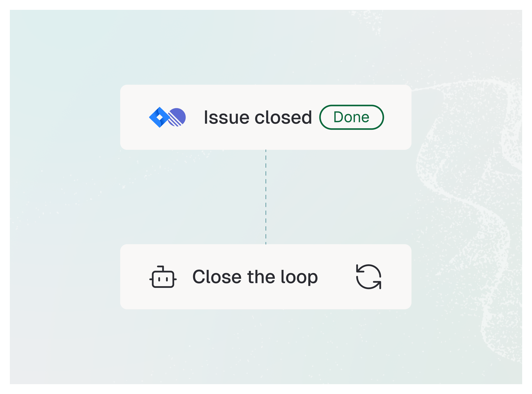 Monitor Jira and Linear in real-time to catch every resolved issue. The moment a ticket resolves, Close the Loop springs into action, no manual tracking required.