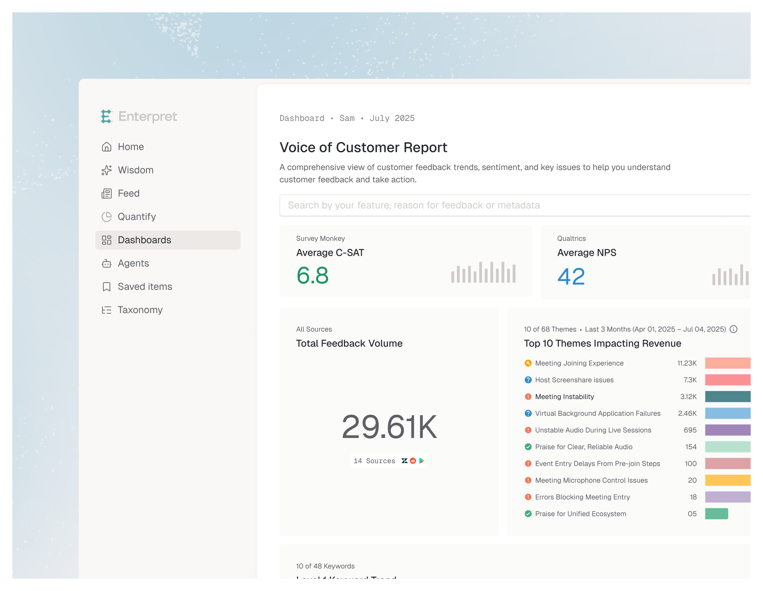 Schedule automated reports to Slack or email. Share interactive dashboards with one-click access from trends to verbatim feedback, ensuring every team acts on the same customer truth.