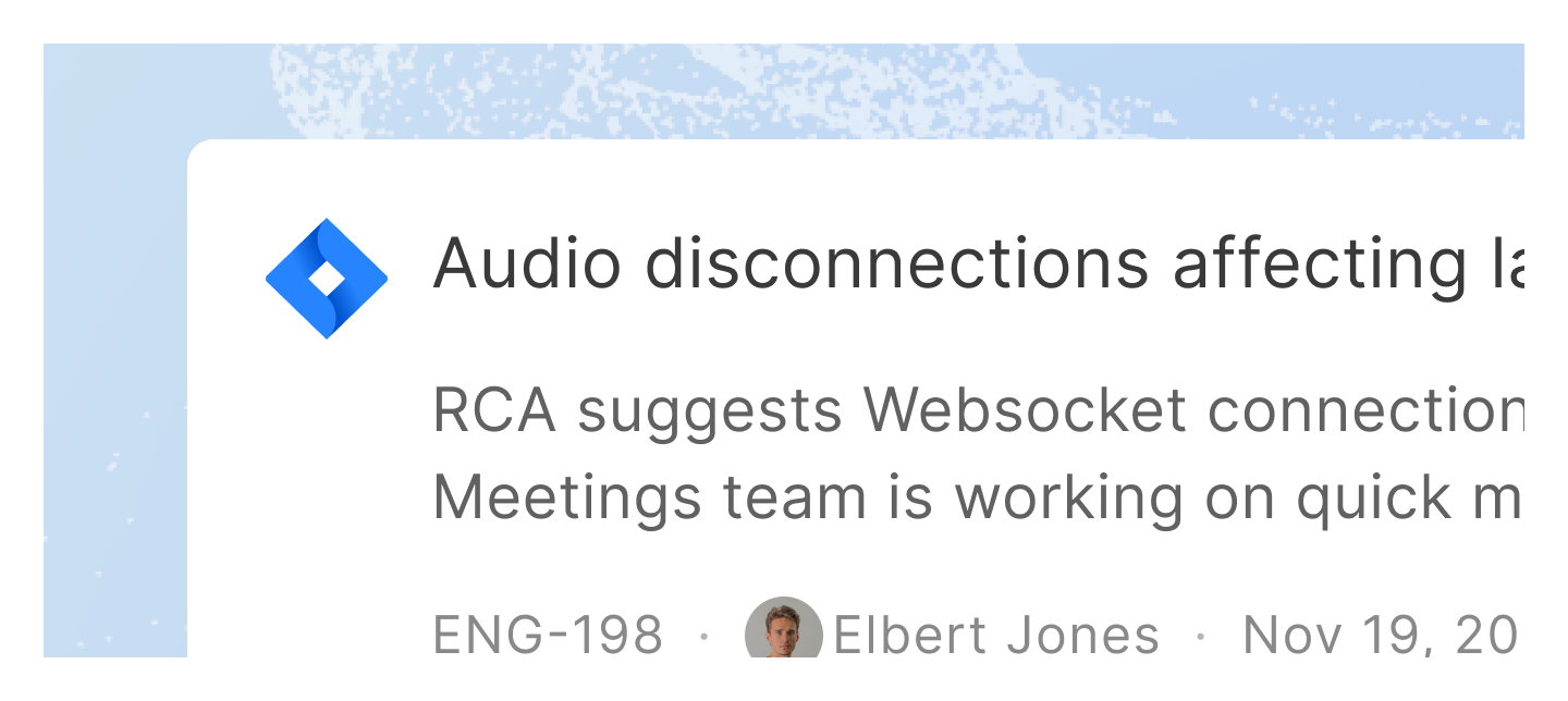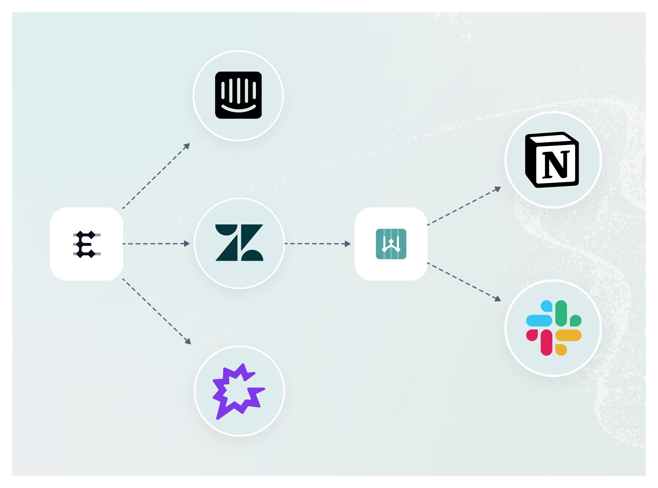Link the tools your teams already use fromissue trackers, support desks, docs, comms and BI, through to native integrations and webhooks. Choose where insights should appear and who can act.