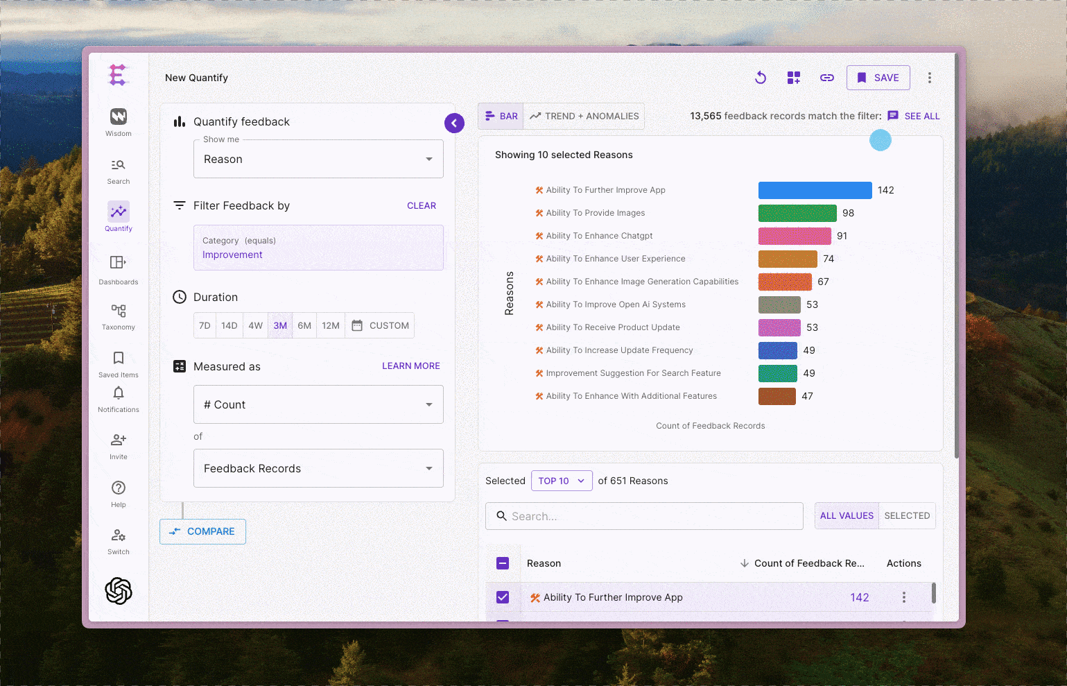 We generated a summary to dig into the feedback behind the top 10 requests.